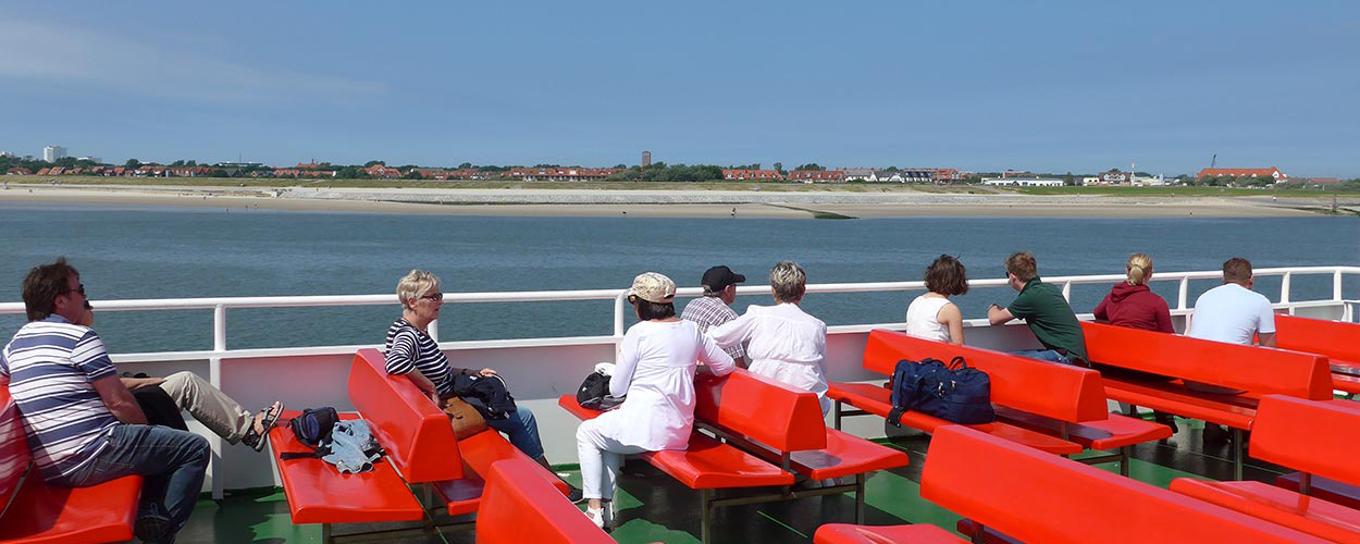 Die Insel Norderney erreichen Sie über das Wasser oder durch die Luft. Spätestens wenn Sie den Hafen in Norddeich mit der Fähre verlassen, beginnt Ihr Urlaub. Lassen Sie sich auf den Sonnendecks den Wind um die Nase wehen, atmen Sie die frische Seeluft und genießen Sie den weiten Blick über das Meer. Manchmal liegen Seehunde auf den Sandbänken und aalen sich in der Sonne, Möwen begleiten das Schiff. Die Überfahrt mit der Fähre durch den Nationalpark Wattenmeer dauert je nach Wasserstand 45-60 min.